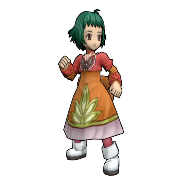 Even so, she continues onward to finish what she had started, to save the world at any cost, working with the party to defeat Shizel and even Nereid. At the end, she stands at Reid's side, helping to keep him steady by acting as his physical support as he and Meredy fringe their Aurora together to destroy the Seyfert Ring and permanently separate the two worlds of Inferia and Celestia. She and Reid are thrown into Inferia after the Orbus Barrier is obliterated, and there they make preparations to travel to Celestia, now an independent planet like Inferia, to form a reunion with Keele and Meredy.
