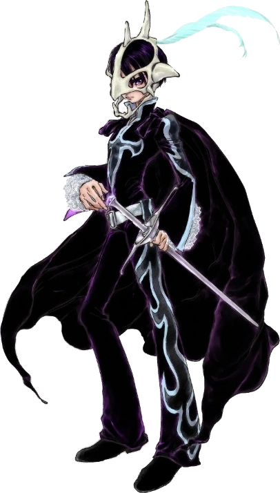 Judas is identical in appearance to his former self, being the same age as when he died despite the 18 years that have since passed. However, he now dons a black, full-body suit bearing a cross-like design on its torso, a stylization that continues down his arms and left leg. He wields two swords in battle, the second replacing his shield, and keeps Chaltier hidden as to further conceal his identity, a skull mask crafted from a dragon's cranium serving as the primary method for this. He also wears a purple cape that compliments the subtle accents of his attire.