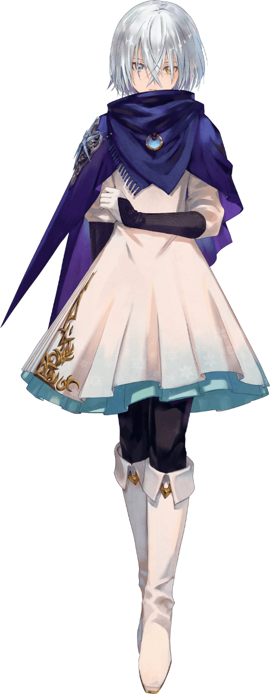 Nazamil is a young girl with silver hair, a blue right eye, and a gold left eye. She wears a white dress with a large blue scarf around her neck, black trousers and white knee-high boots. Being born as a daughter of a lord, Nazamil always had to act according to her father's wishes, even if she didn't want to. Due to her Dahnan blood, most Renans who even knew of her, would act either indifferently or with outright disgust to her. This abuse left her fearful of anyone. Her Dahnan mother died not long after she was born, which left Nazamil without a mother figure. With no real friends or family to support her, Nazamil never got learn who she truly is.
