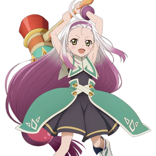 Poisson fights using a hammer that she holds with both of her hands. She attacks by utilizing powerful downward strikes and spins, as well as several hammer artes. Her mystic arte, Tyrant Hammer, involves several spins that conclude with a powerful downward strike.