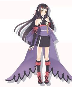 Sakuya appears as a young woman with fair skin and long black hair. She has gold eyes and small red horns that emerge from her forehead. Her attire consists of a purple, kimono-style top that is fastened in the back with a large, extravagant ribbon that flows to the ground. Her gloves and boots are fastened with pink ribbon and mirror Thitose's kunoichi-inspired outfit. Sakuya's Tales of Innocence R cut-in image with Thitose reveals a lotus flower in the back of her hair, as well as some form of pink body art on her back. In addition, she wields a Tanto in the same pose as Thitose. In a skit, Spada Belforma describes Sakuya as a woman of whom all Sensus men dreamed yet who only has eyes for Asura.