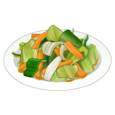 Restores 10 HP every 0.5 sec. | 30 seconds have passed in battle | Cabbage x1 Worcestershire Sauce x1 |